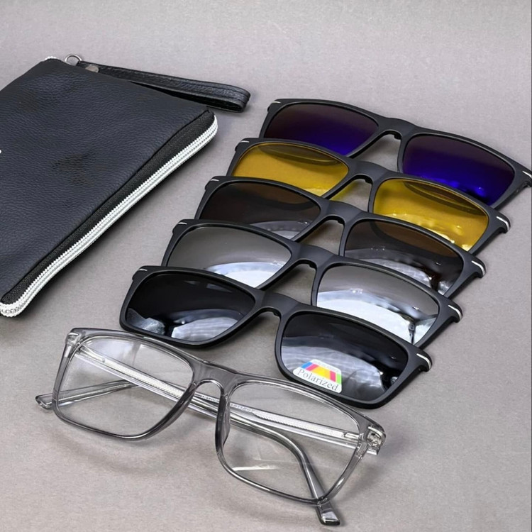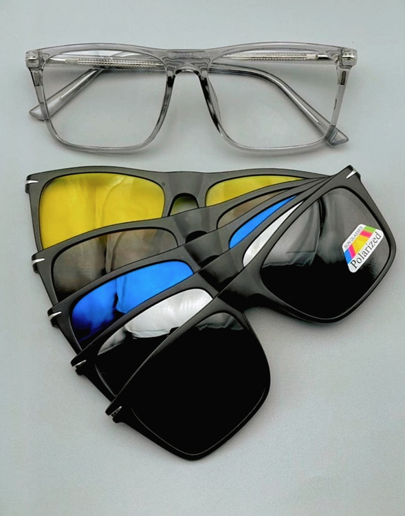 عینک طبی مگنتی ۵ کاوردار کد ۱۲۰۶ استیت شفاف طوسی مدل مستطیلی