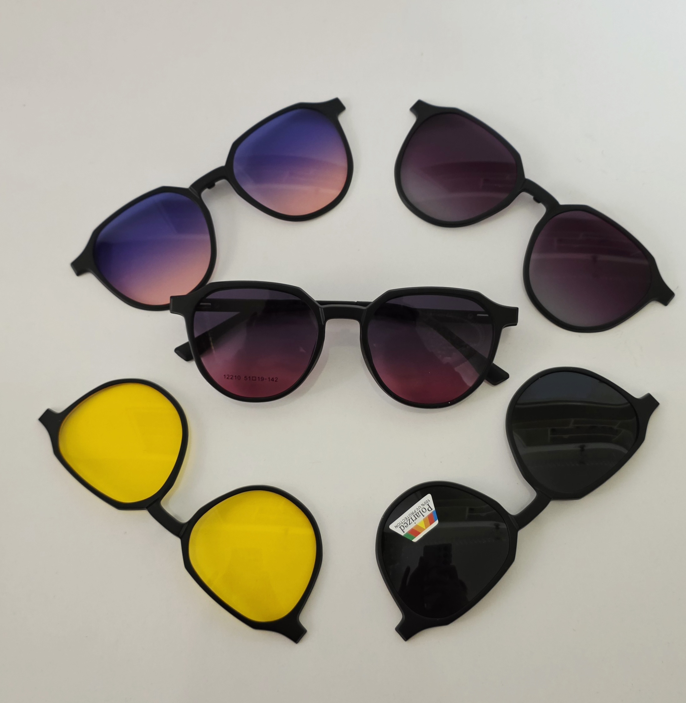 ✅️دارای پنج کاور آفتابی و دید در شب که همگی کاور ها uv400 هستند و کاور مشکی علاوه بر uv400 پلارایز نیز میباشد