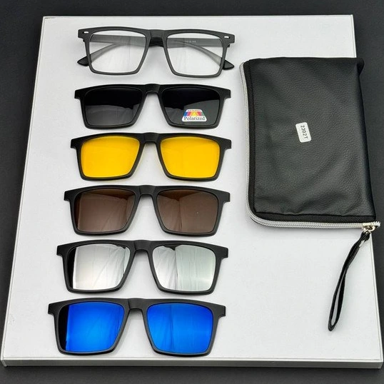 ✅️ عینک به همراه ۵ کاور آفتابی و دید در شب که همگی uv400 هستند و کاور مشکی علاوه بر uv400 پلارایز نیز میباشد به همراه جلد و دستمال ارسال میشود